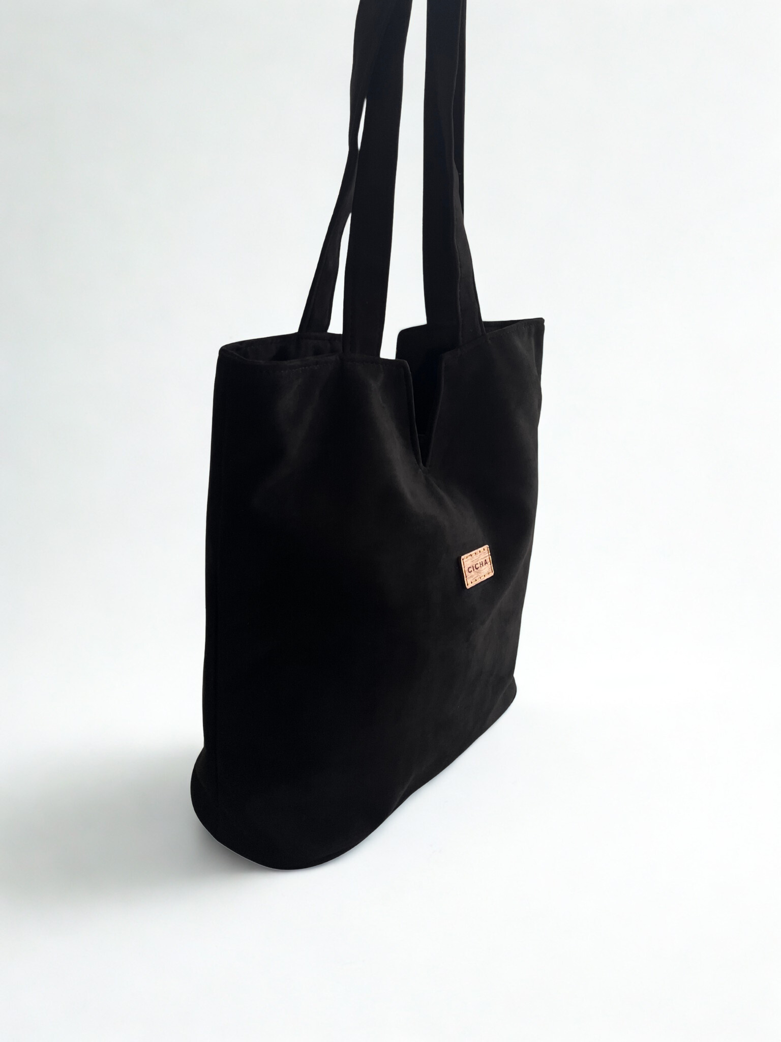 Bolsa artesanal, eco gamuza, básica, interior algodón, bolsillo con cierre.